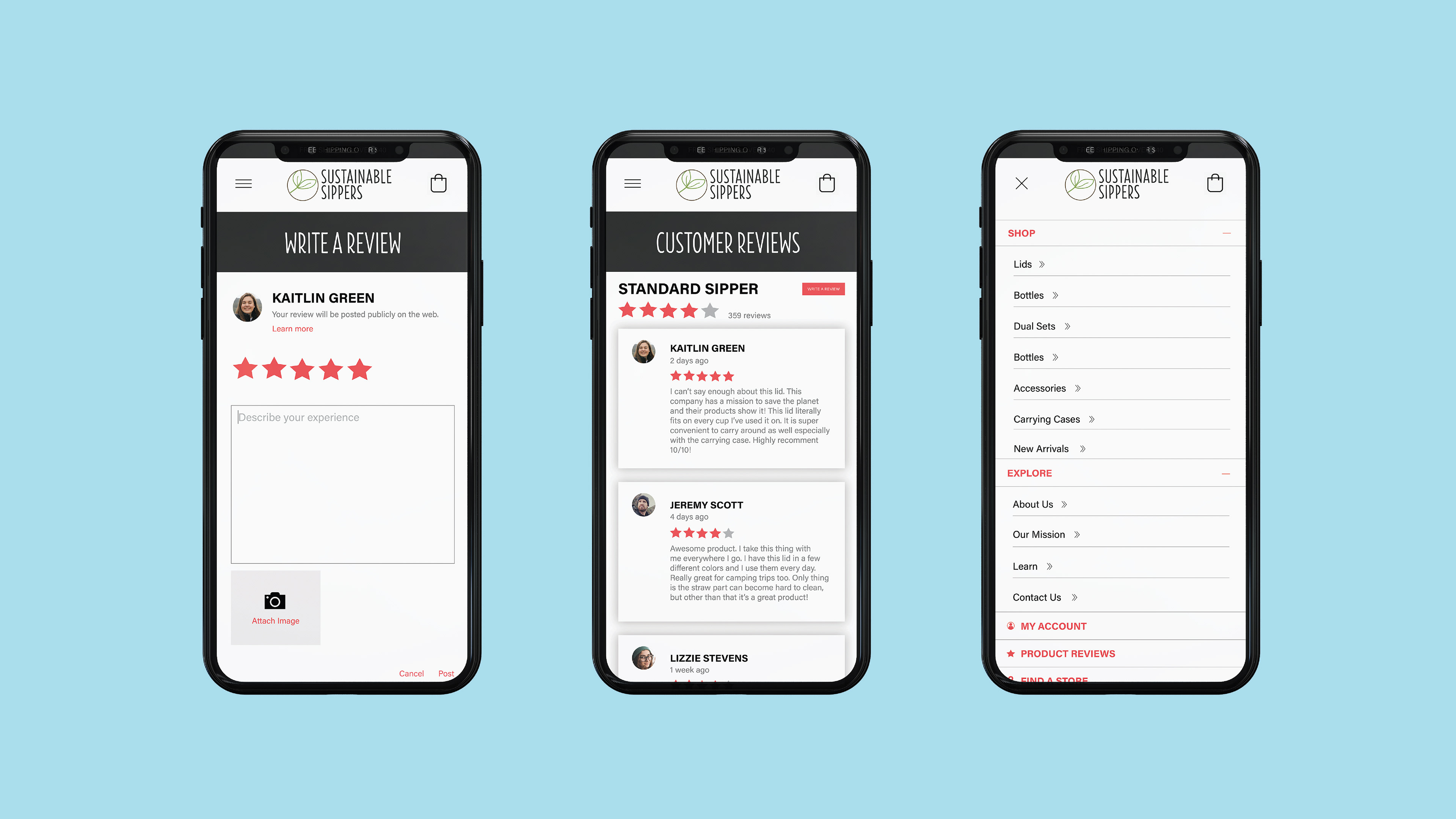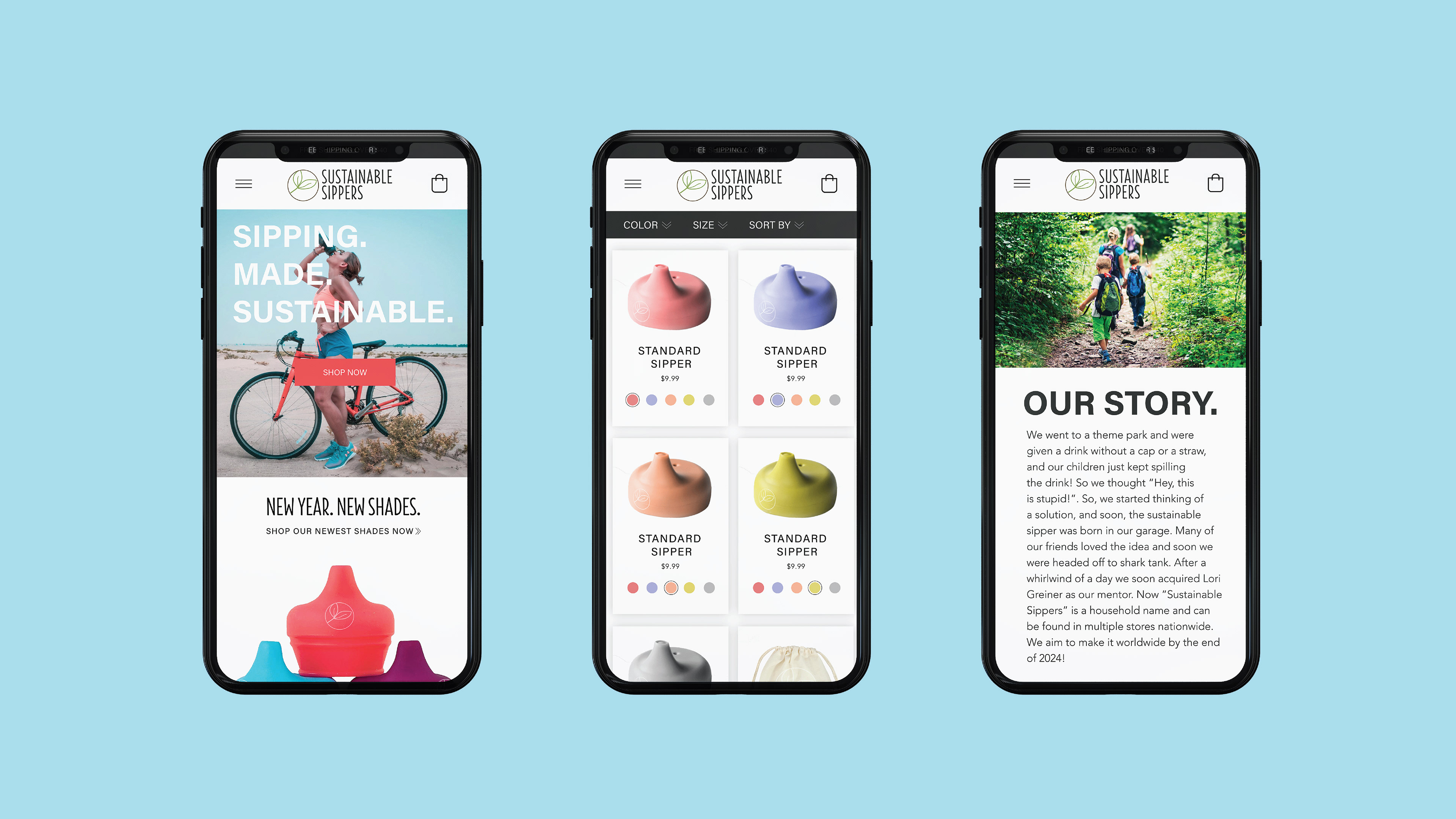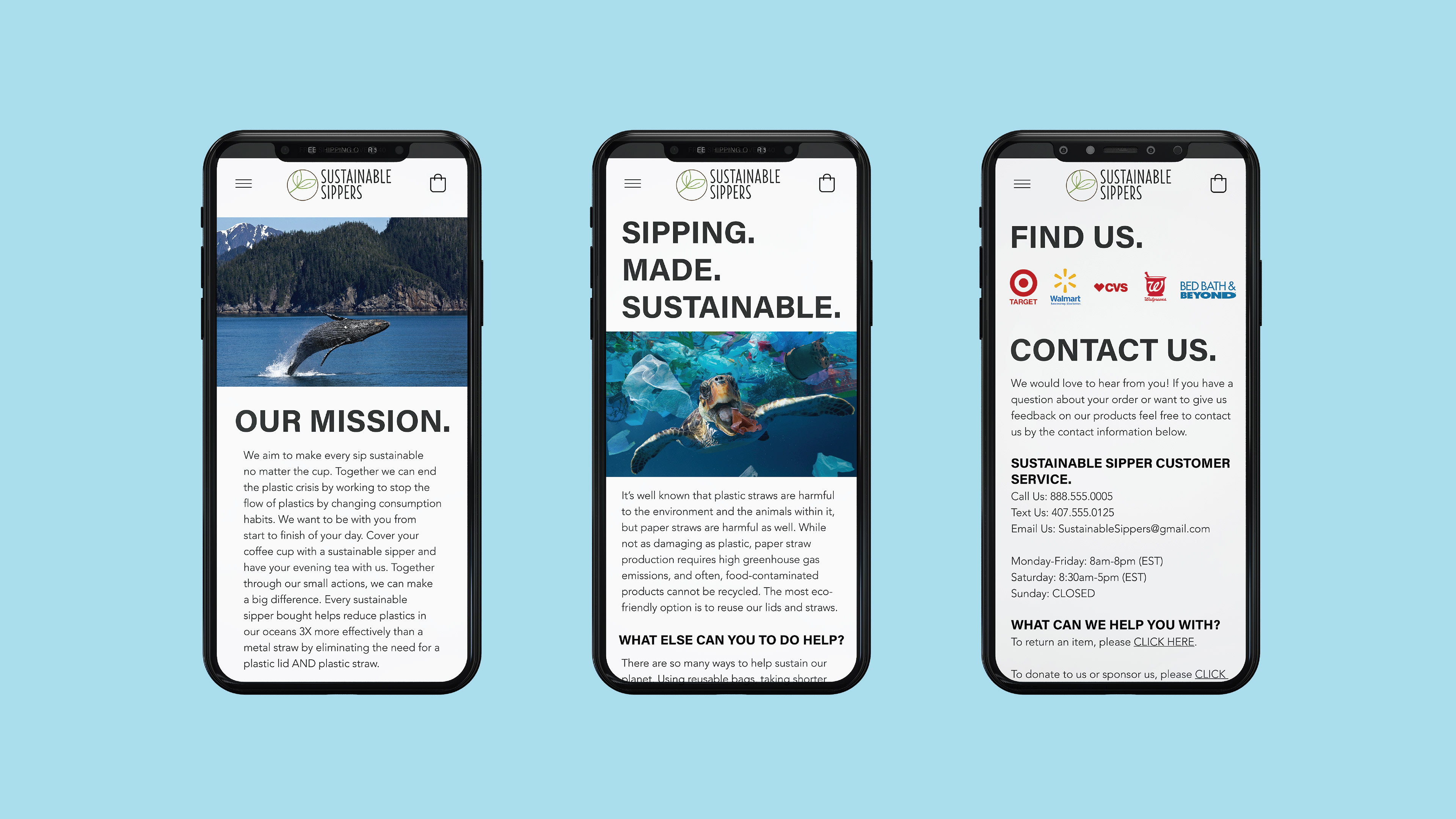 Static mobile website design that I created for a faux company called Sustainable Sippers. Company logo was not created by me.