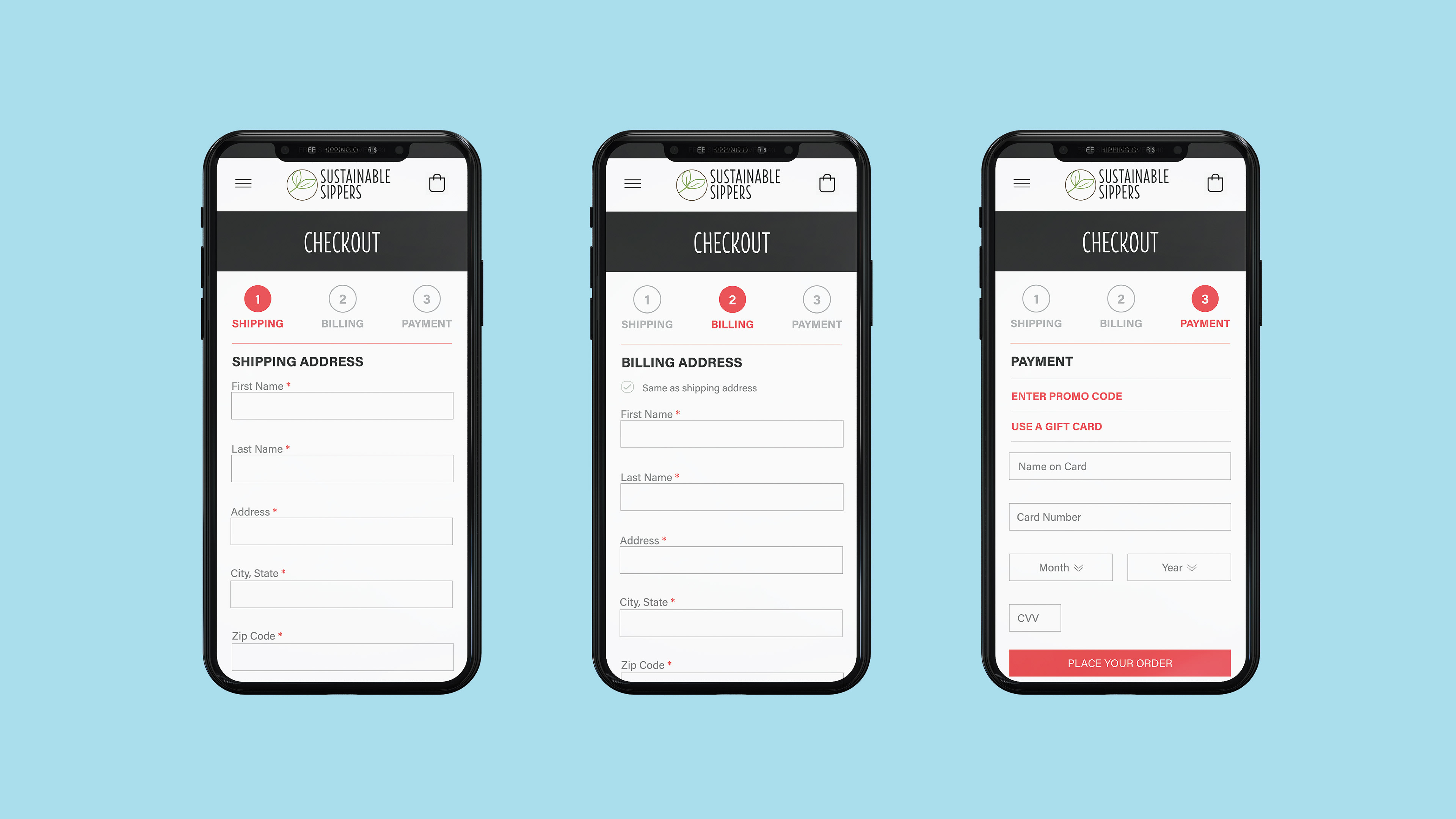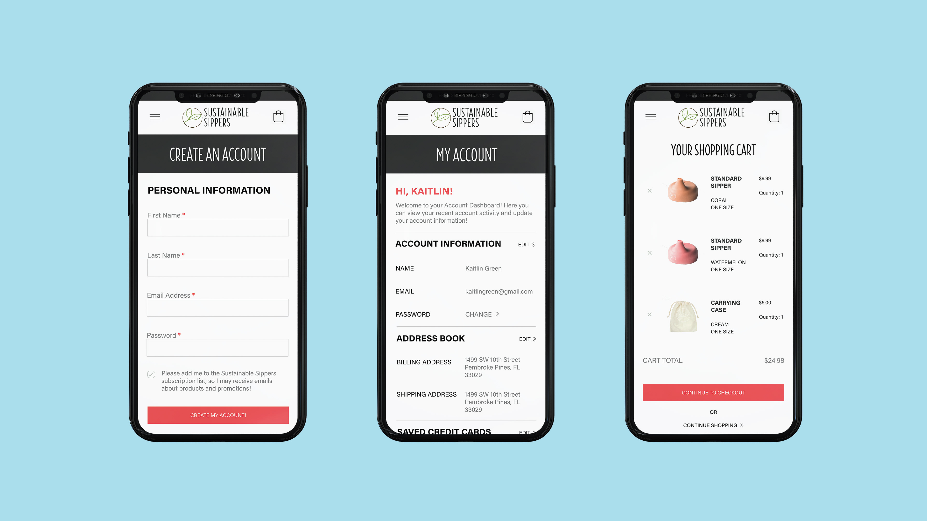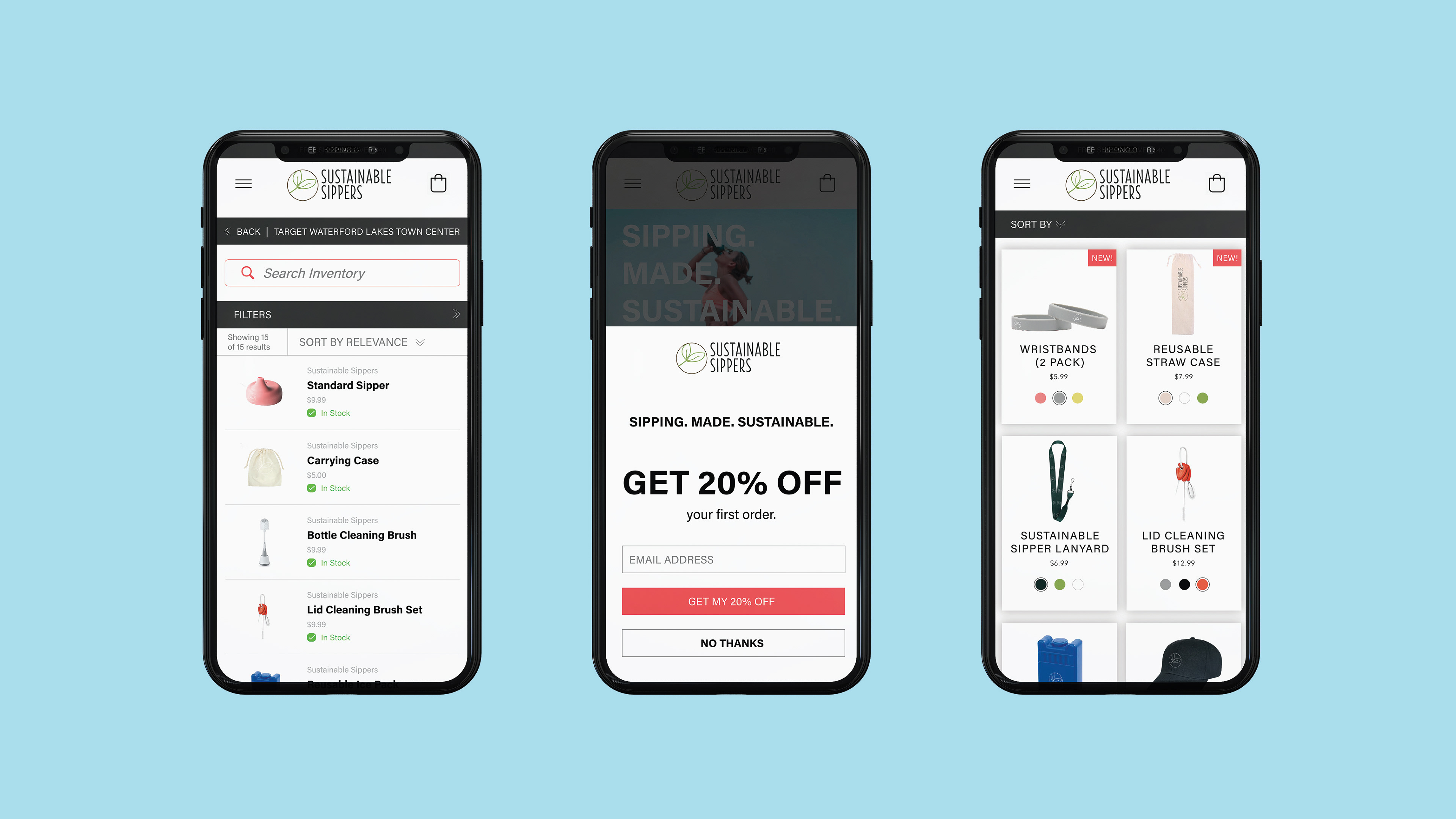 Static mobile website design that I created for a faux company called Sustainable Sippers. Company logo was not created by me.
